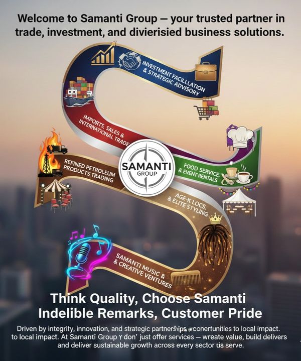 We specialize in investment facilitation, international trade, refined petroleum products trade, importation and sales of general merchandise, food and catering services, professional event and party rentals, and Samanti Music, our creative platform dedicated to inspiring, promoting, and supporting musical talent and entertainment excellence.